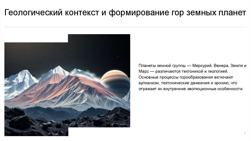 Геологический контекст и формирование гор земных планетПланеты земной группы — Меркурий, Венера, Земля и