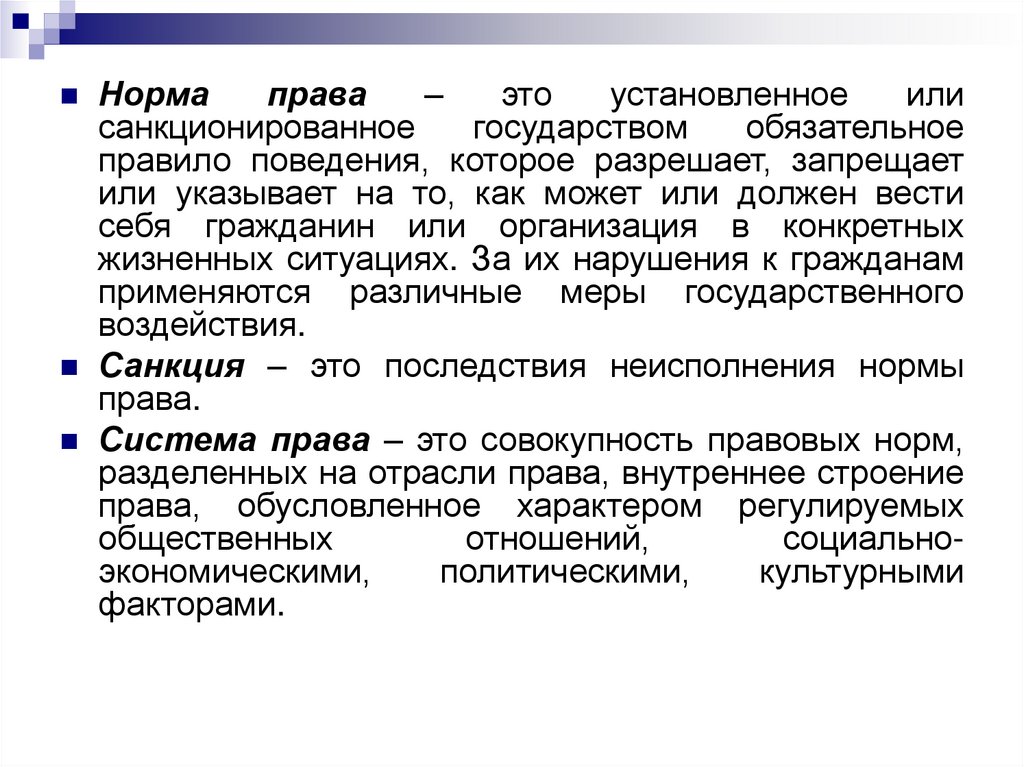 Лекция2. Право – совокупность установленных государством общеобязательных норм, регулирующих общественные отношения, выраженные в
