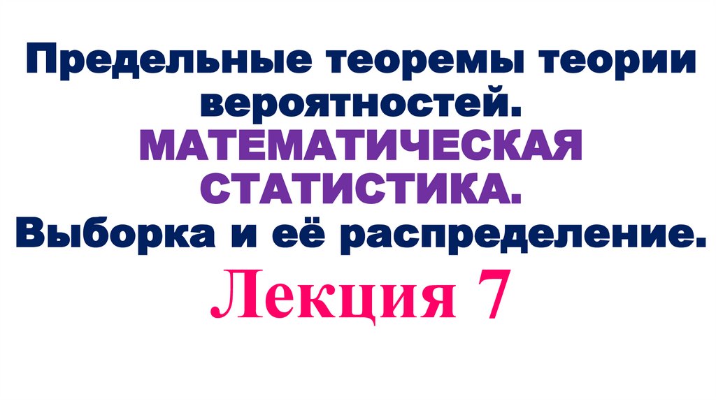 1. Предельные теоремы теории вероятностей. МАТЕМАТИЧЕСКАЯ СТАТИСТИКА. Выборка и её распределение.