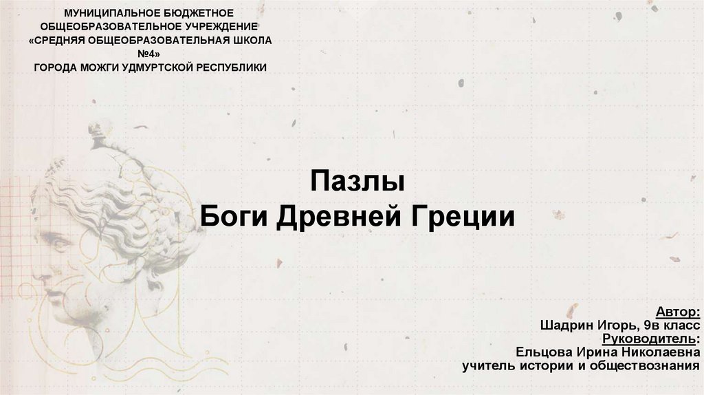 1) Найти информацию про Богов Древней Греции.2) Выбрать материалы для создания пазла.