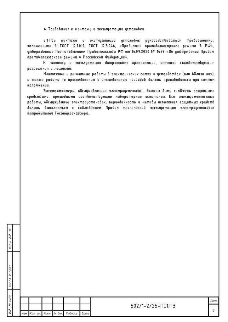 6. Требования к монтажу и эксплуатации установки ....................................................................... 8