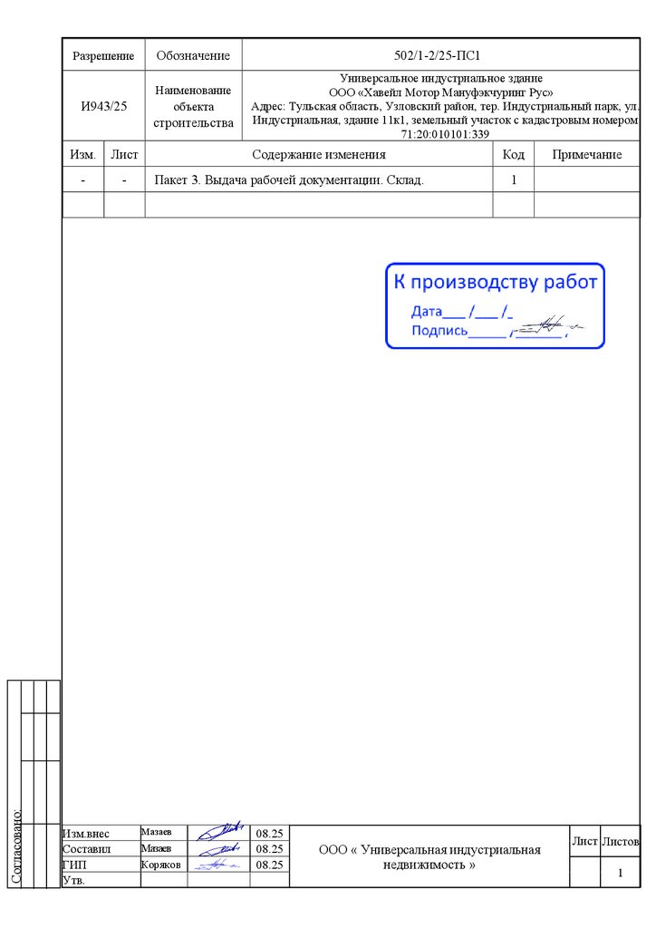 Складской комплекс ООО «Хавейл Мотор Мануфэкчуринг Рус» по адресу: