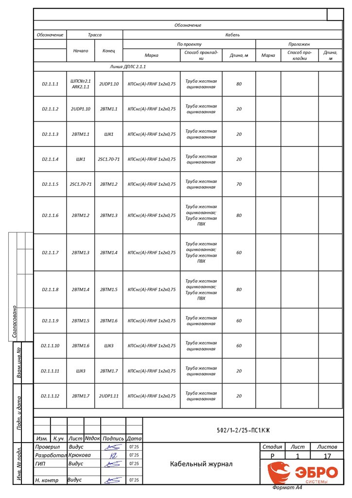 Кабели парной скрутки огнестойкие для систем пожарной сигнализации