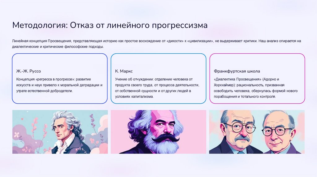 Методология: Отказ от линейного прогрессизмаЛинейная концепция Просвещения, представляющая историю как простое восхождение от «дикости» к «цивилизации», не выдерживает критики. Наш анализ опирается на