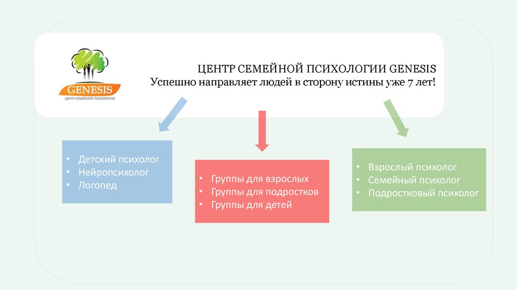 ЦЕНТР СЕМЕЙНОЙ ПСИХОЛОГИИ GENESISУспешно направляет людей в сторону истины уже 7 лет!