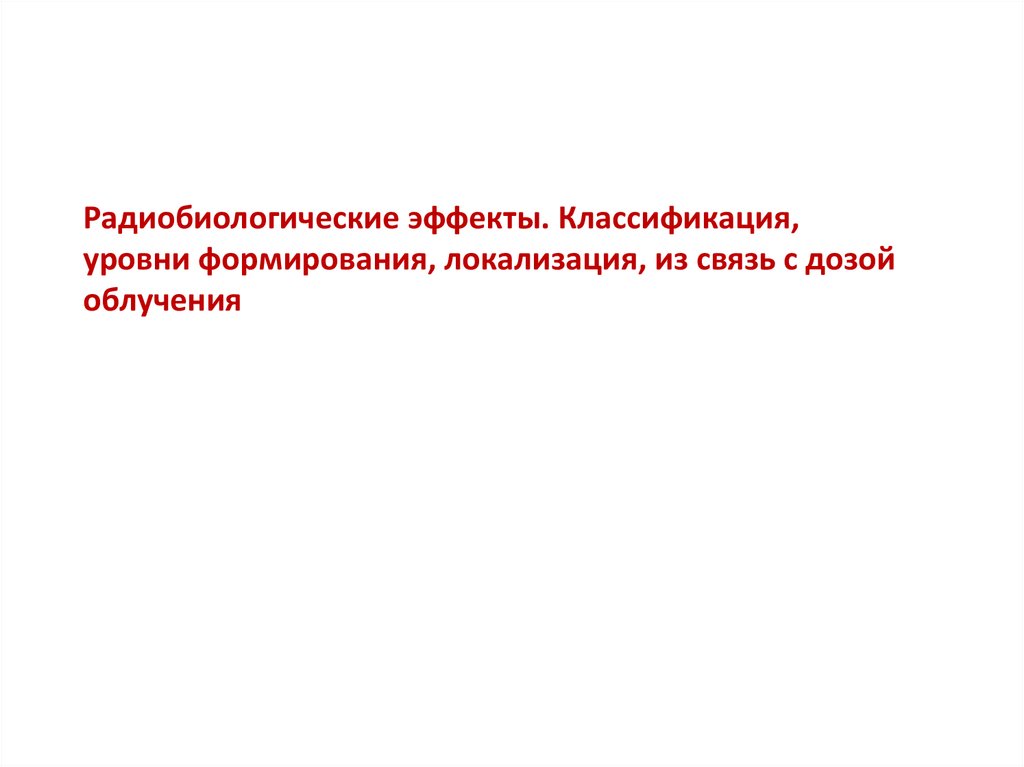 Радиобиологические эффекты. Классификация,уровни формирования, локализация, из связь с дозой