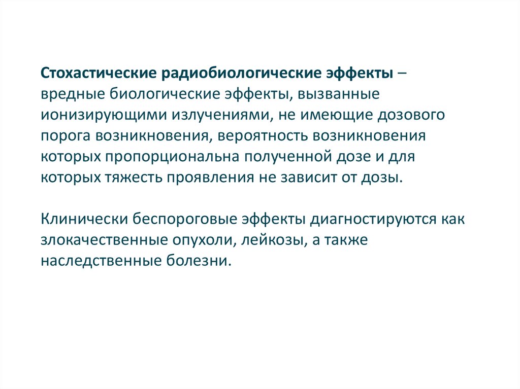 Стохастические радиобиологические эффекты –вредные биологические эффекты, вызванные