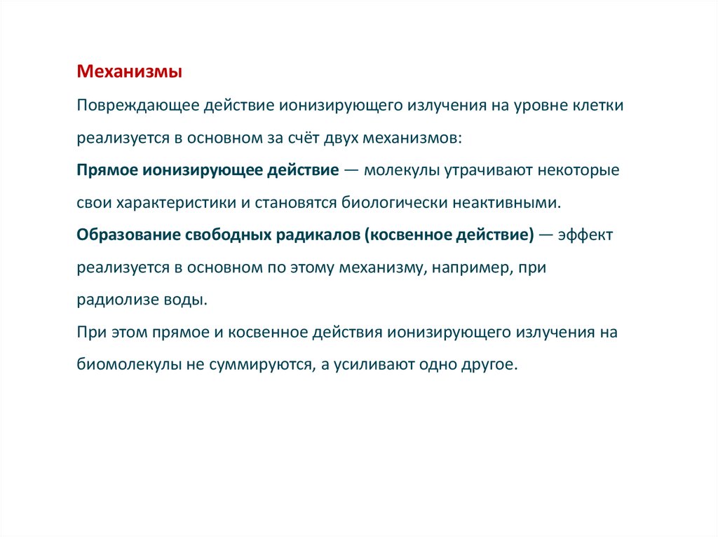 2. Как механизмы реализации эффектов отличаются при облучении в