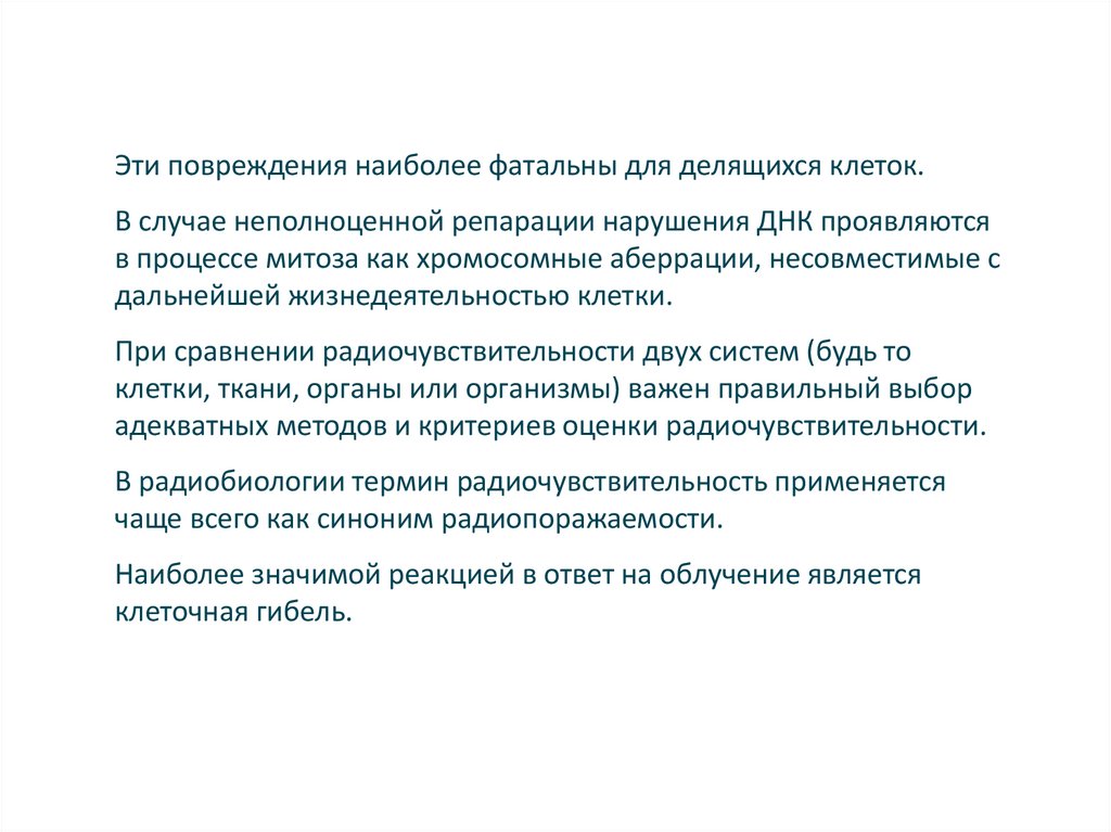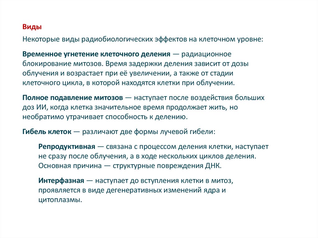 1. Основные радиобиологические эффекты на клеточном уровне. Ранние нарушения клеточного метаболизма