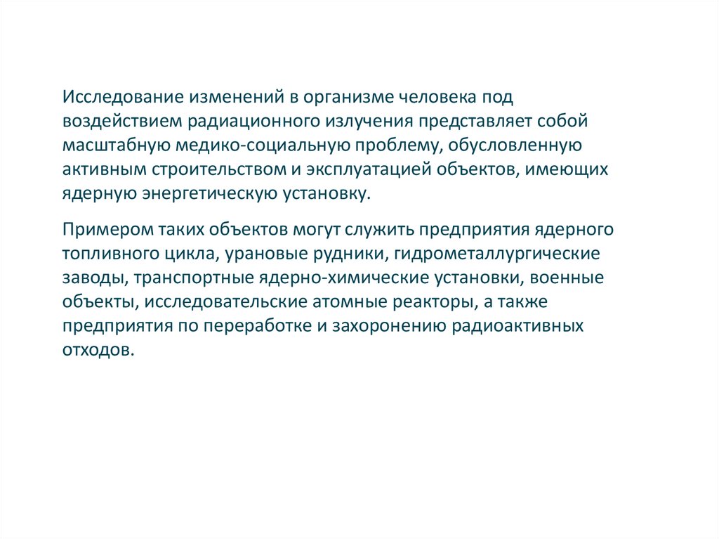 Исследование изменений в организме человека подвоздействием радиационного излучения представляет собой