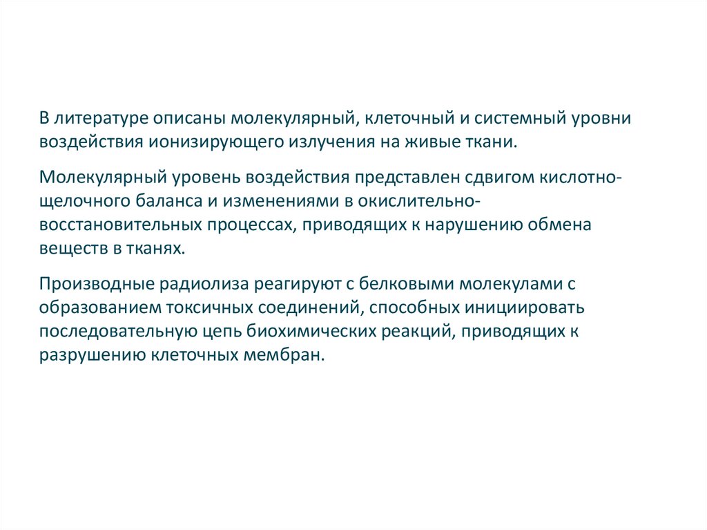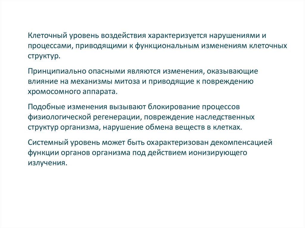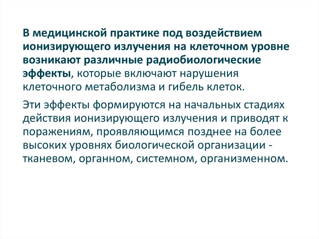 В медицинской практике под воздействиемионизирующего излучения на клеточном уровне