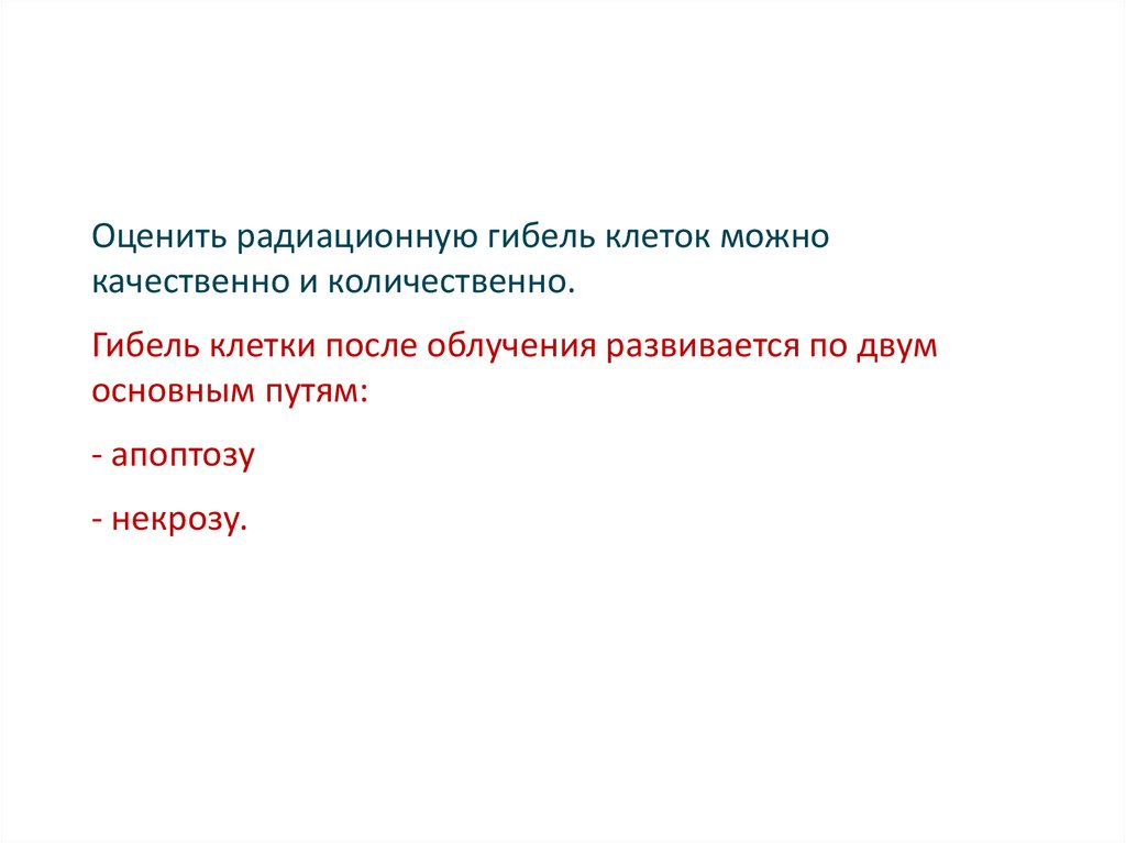 Оценить радиационную гибель клеток можнокачественно и количественно.