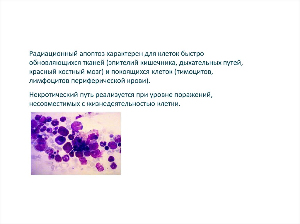 Радиационный апоптоз характерен для клеток быстрообновляющихся тканей (эпителий кишечника, дыхательных путей,