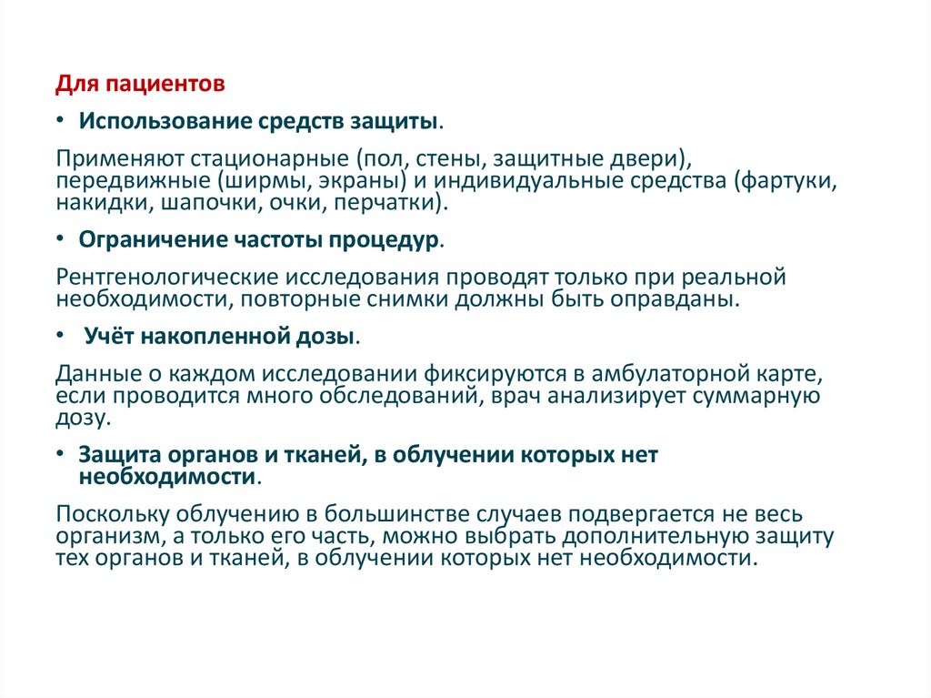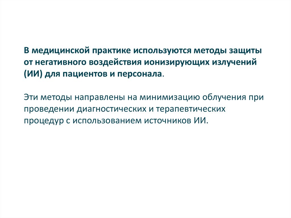 В медицинской практике используются методы защитыот негативного воздействия ионизирующих излучений