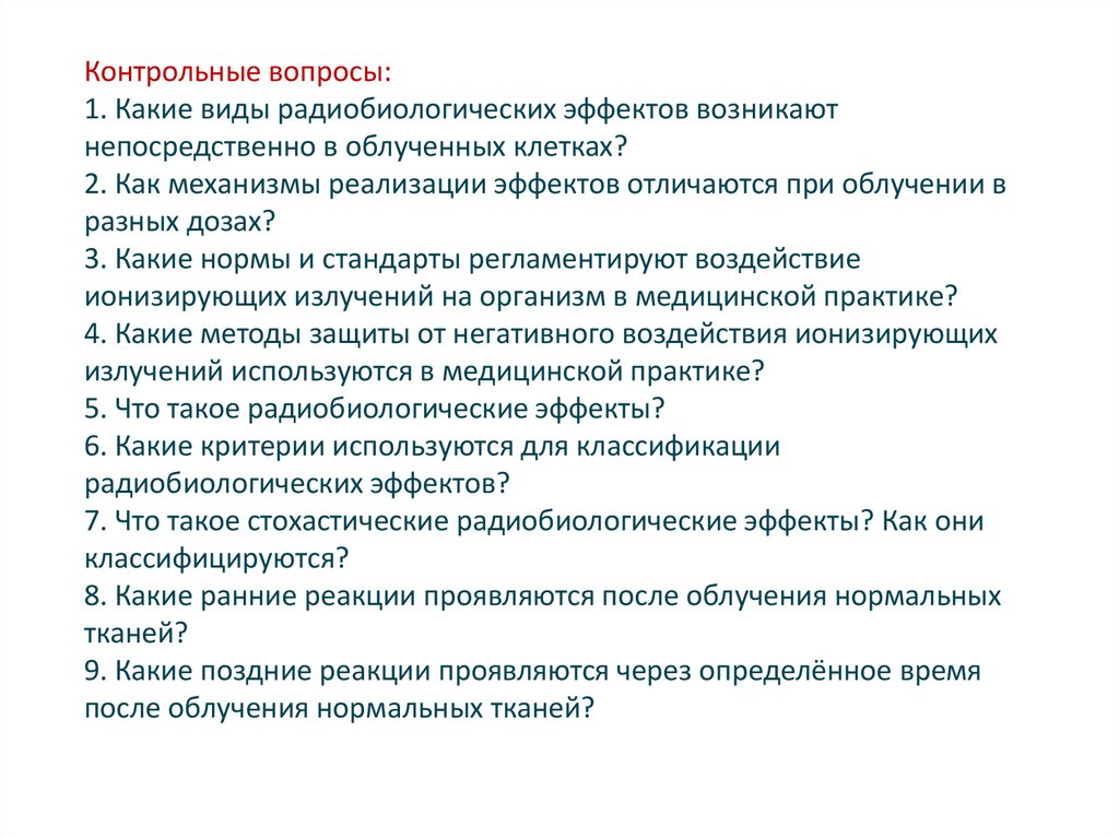 Контрольные вопросы:1. Какие виды радиобиологических эффектов возникают