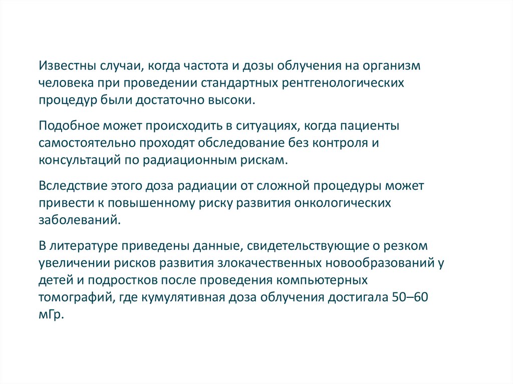 Известны случаи, когда частота и дозы облучения на организмчеловека при проведении стандартных рентгенологических