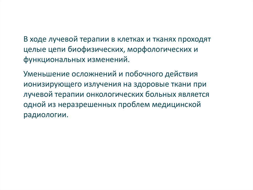 В ходе лучевой терапии в клетках и тканях проходятцелые цепи биофизических, морфологических и