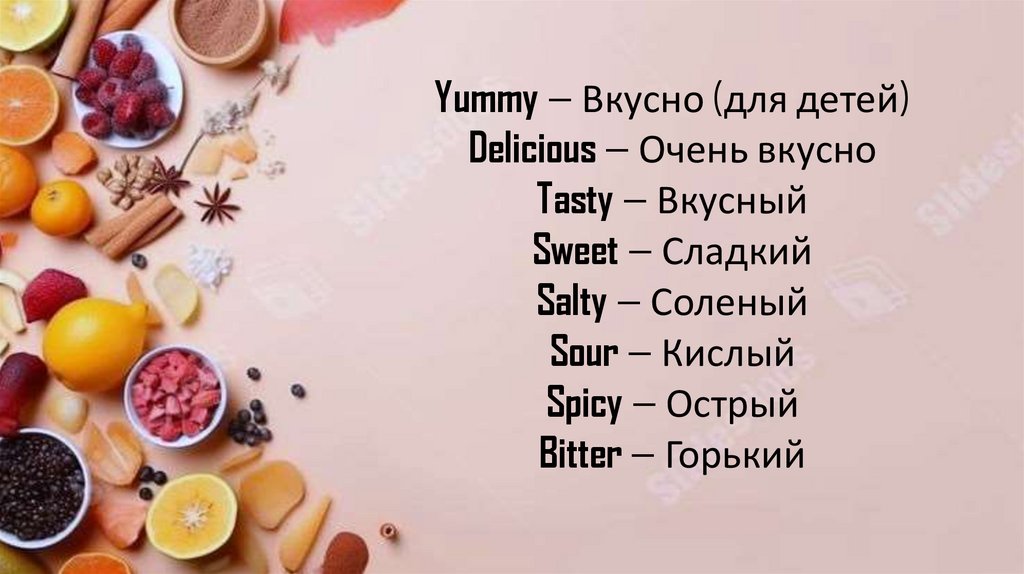 Yummy — Вкусно (для детей)Delicious — Очень вкусно