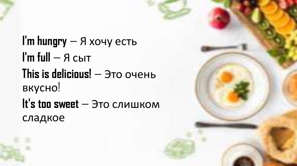 I'm hungry — Я хочу естьI'm full — Я сыт