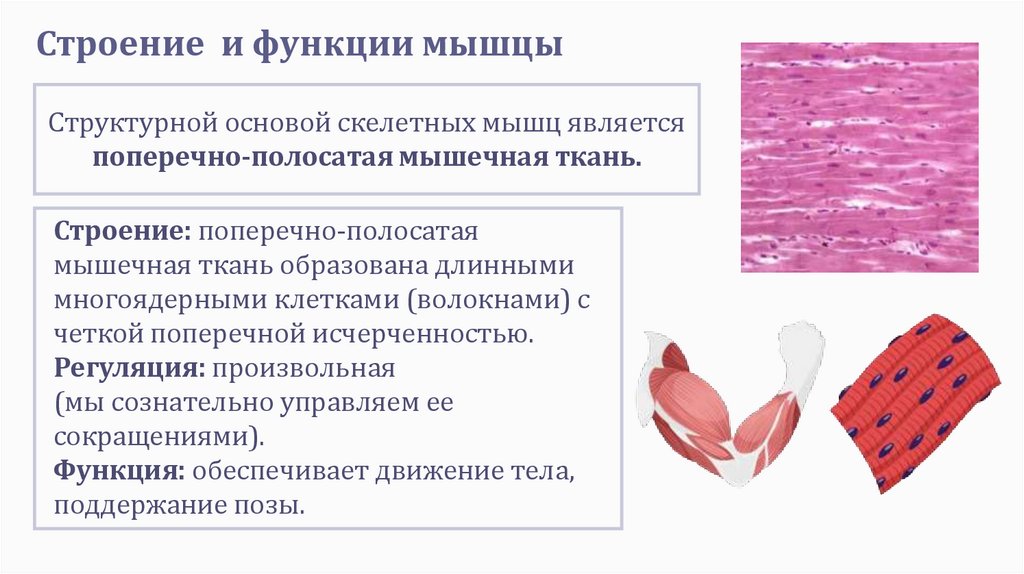 Строение и функции мышцыСтруктурной основой скелетных мышц является