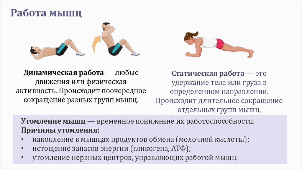 • накопление в мышцах продуктов обмена (молочной кислоты);