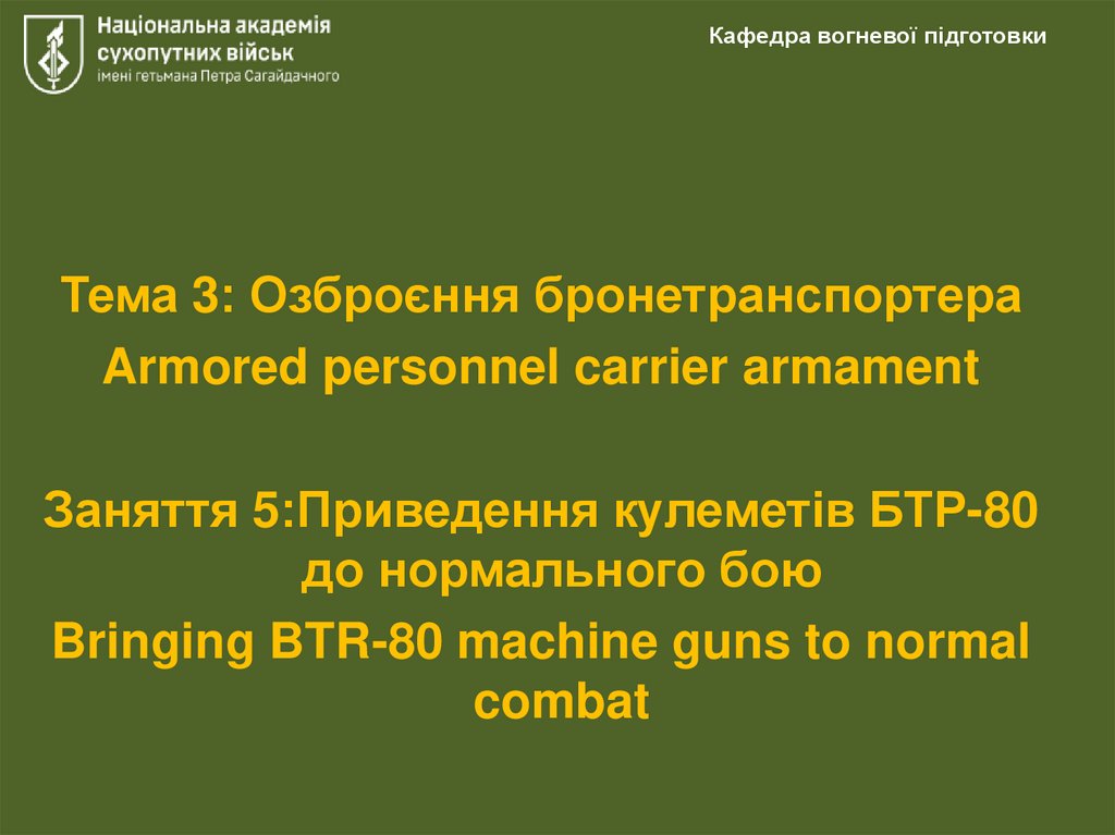 Кафедра вогневої підготовкиТема 3: Озброєння бронетранспортера