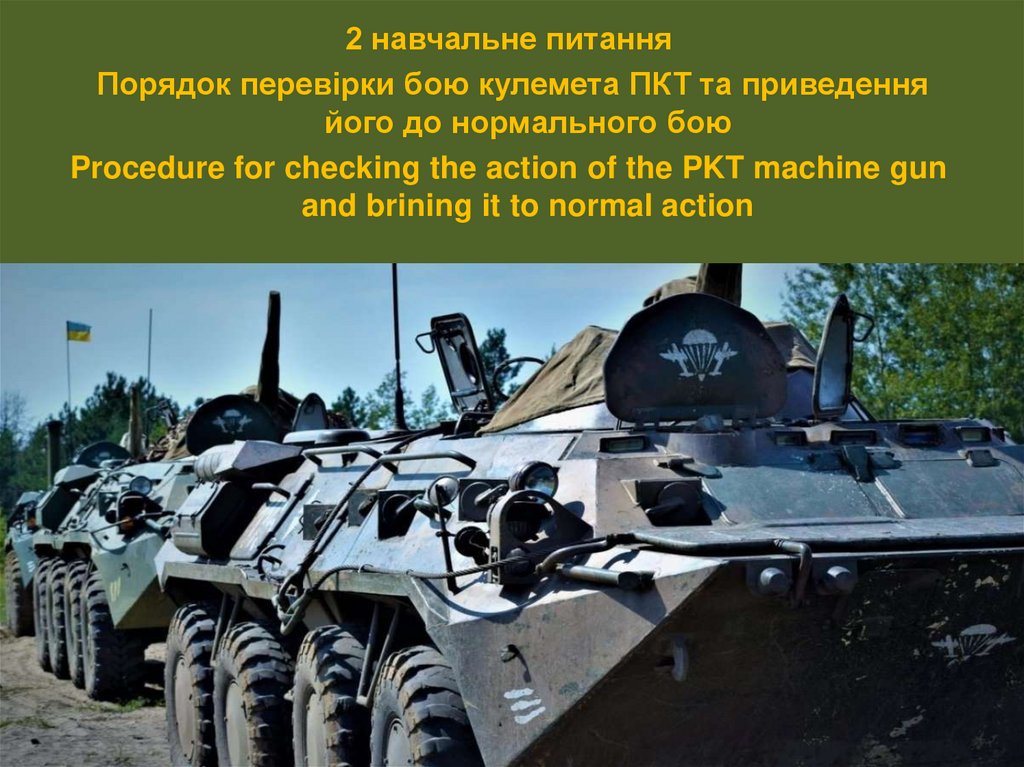 2.Порядок перевірки бою кулемета ПКТ та приведення