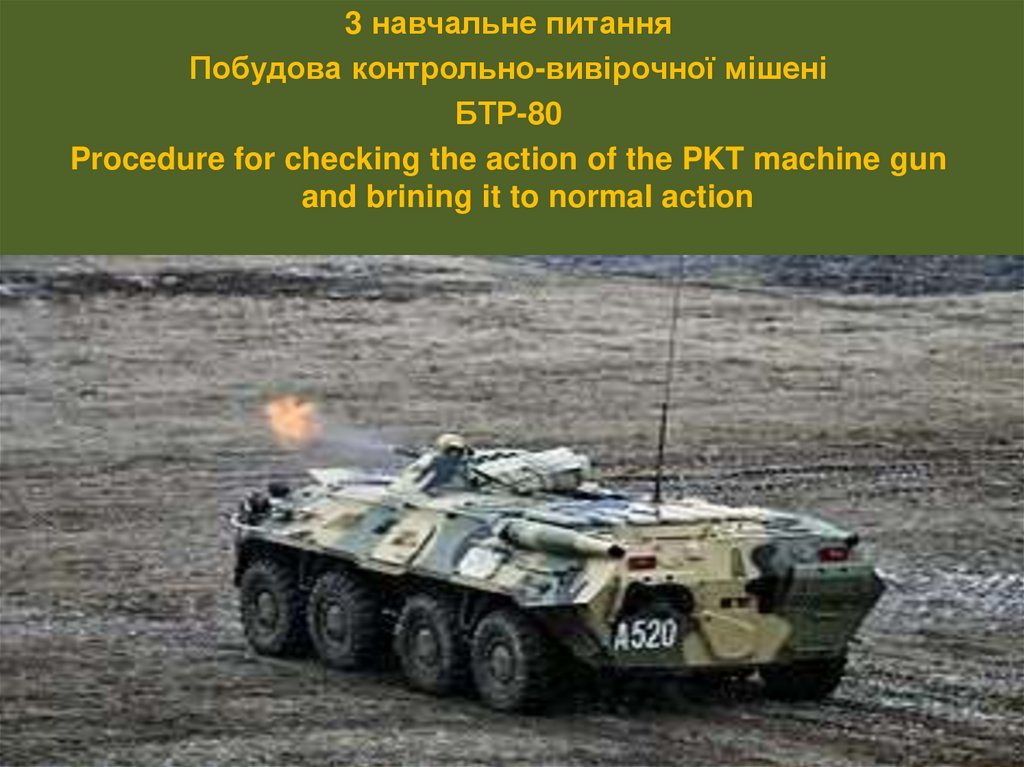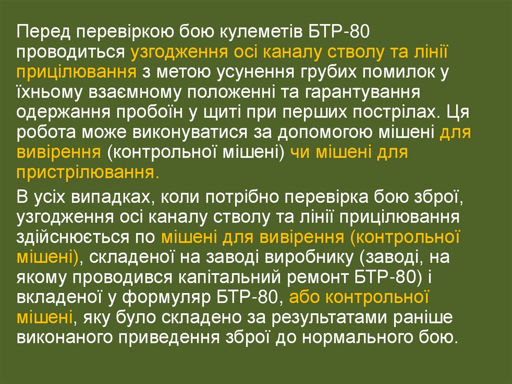 Перед перевіркою бою кулеметів БТР-80проводиться узгодження осі каналу стволу та лінії