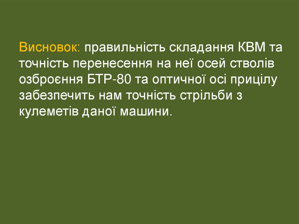 Висновок: правильність складання КВМ таточність перенесення на неї осей стволів