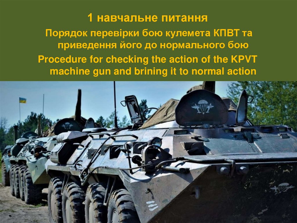 1 навчальне питанняПорядок перевірки бою кулемета КПВТ та