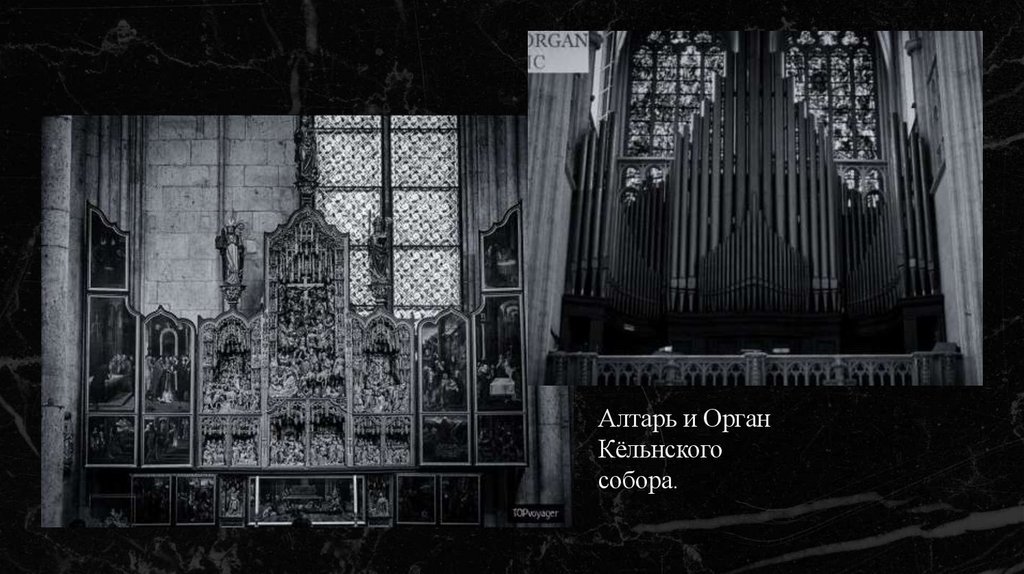 9. Внутреннее пространство Кёльнского собора: нефа, алтарь, орган, витражи