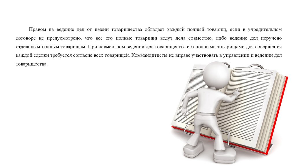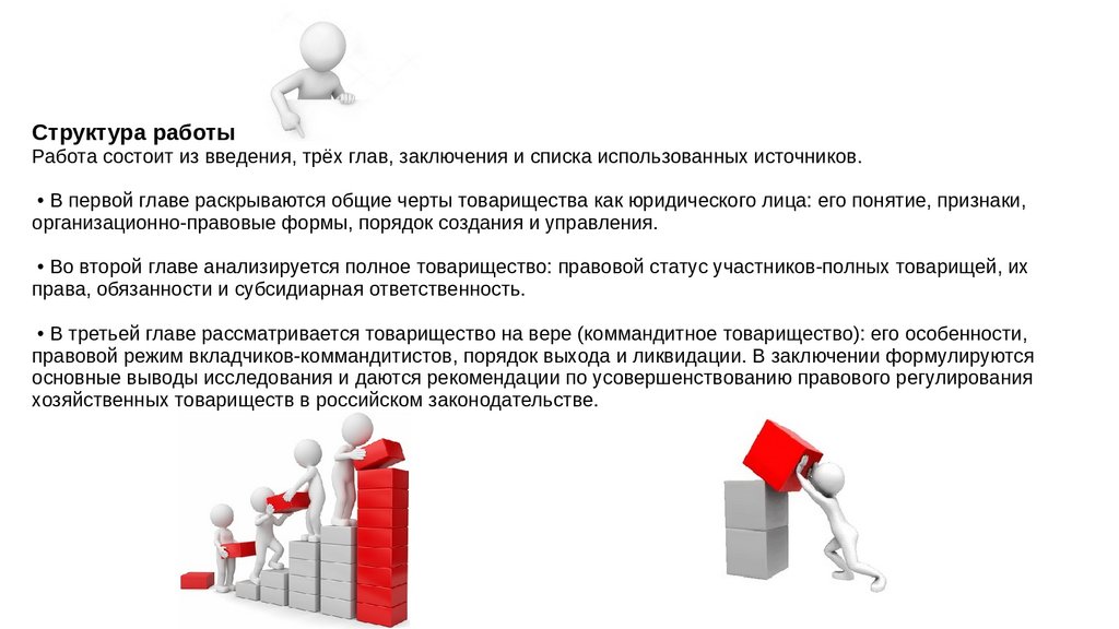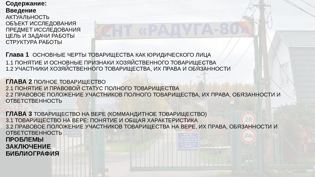 • В первой главе раскрываются общие черты товарищества как юридического лица: его понятие, признаки,