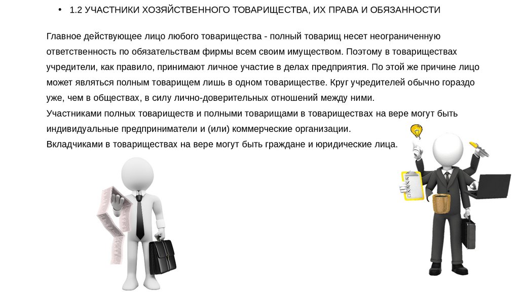 1.2 УЧАСТНИКИ ХОЗЯЙСТВЕННОГО ТОВАРИЩЕСТВА, ИХ ПРАВА И ОБЯЗАННОСТИ