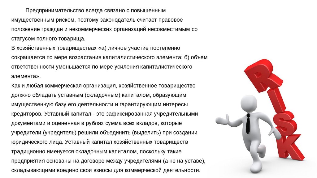 юридического лица. Так, ограничение предпринимательского риска обеспечивается для полных участников тем, что