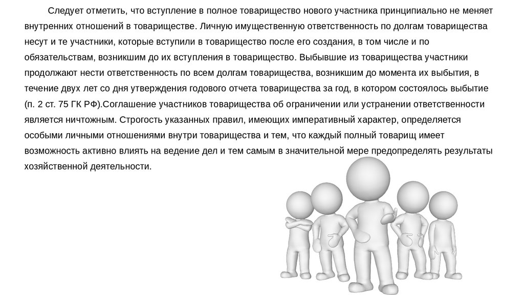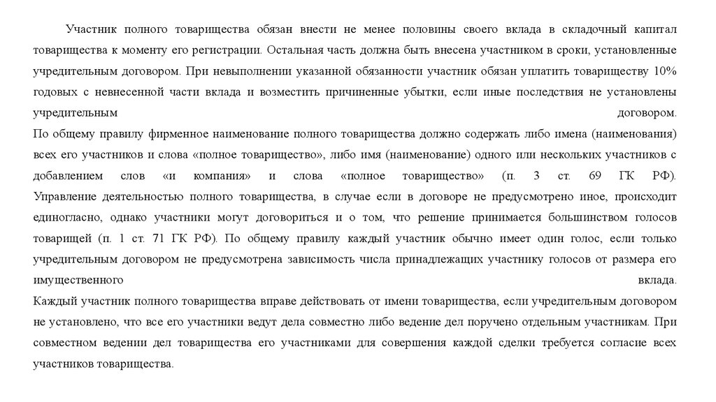• Во второй главе анализируется полное товарищество: правовой статус участников-полных товарищей, их