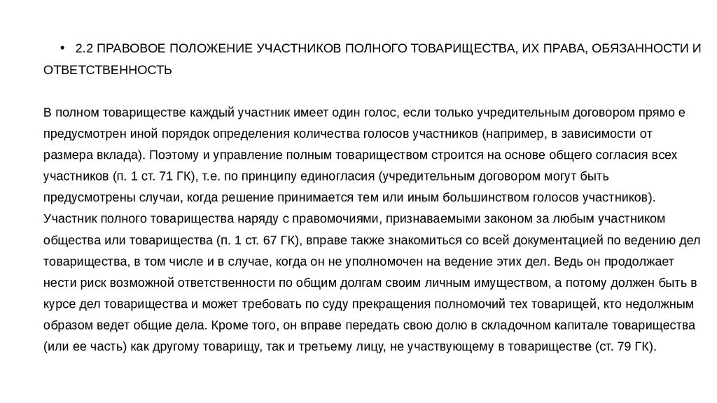 2.2 ПРАВОВОЕ ПОЛОЖЕНИЕ УЧАСТНИКОВ ПОЛНОГО ТОВАРИЩЕСТВА, ИХ ПРАВА, ОБЯЗАННОСТИ И