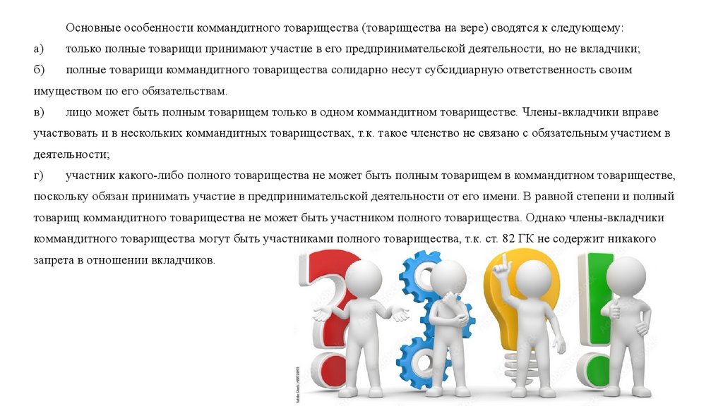 3. Проанализировать особенности коммандитного товарищества, его участников-вкладчиков и правовой
