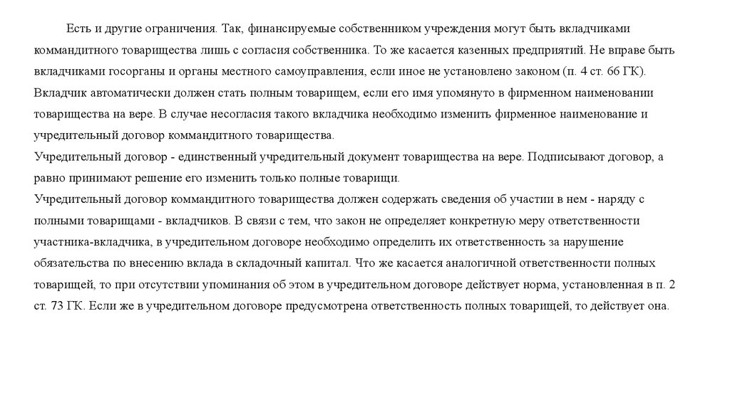 (в частности коммандитное товарищество) остаются редкими, а их правовое регулирование демонстрирует ряд