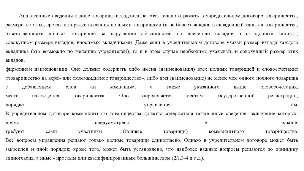 посвящённых исключительно хозяйственным товариществам (полным и на вере), с чётким регламентом