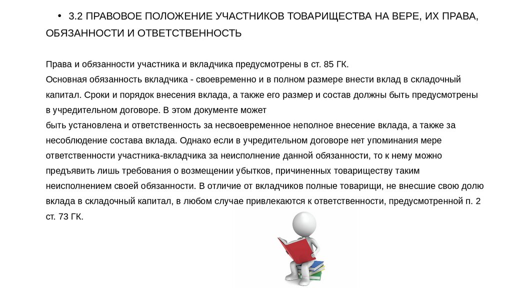 3.2 ПРАВОВОЕ ПОЛОЖЕНИЕ УЧАСТНИКОВ ТОВАРИЩЕСТВА НА ВЕРЕ, ИХ ПРАВА, ОБЯЗАННОСТИ И