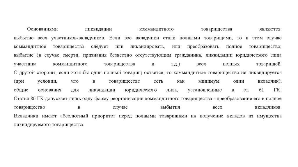 Статья 86 ГК допускает лишь одну форму реорганизации коммандитного товарищества - преобразование его в полное