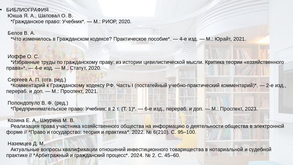 мало. При этом нормативная база (ГК РФ, федеральные законы) и научная литература по проблемам