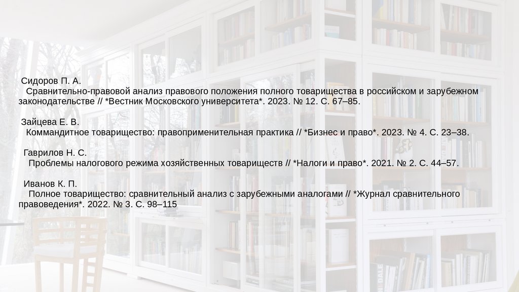 Полное товарищество: сравнительный анализ с зарубежными аналогами // *Журнал сравнительного