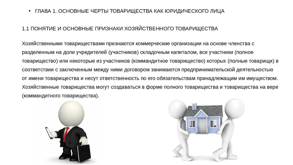 1.1 ПОНЯТИЕ И ОСНОВНЫЕ ПРИЗНАКИ ХОЗЯЙСТВЕННОГО ТОВАРИЩЕСТВА