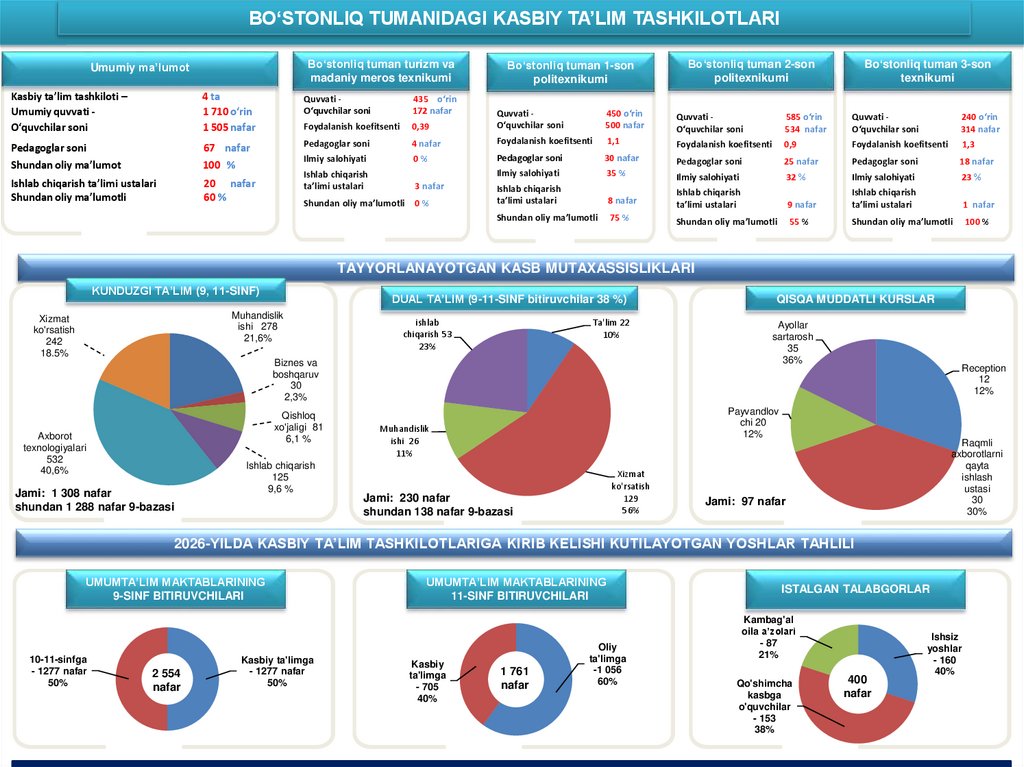 Bo'stonliq tumani kasbiy ta'lim tashkilotlari