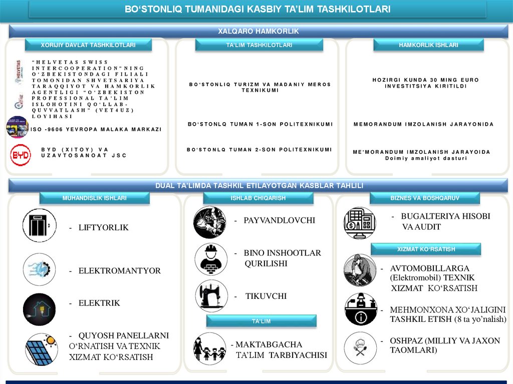 BO‘STONLIQ TUMANIDAGI KASBIY TA’LIM TASHKILOTLARIXALQARO HAMKORLIK