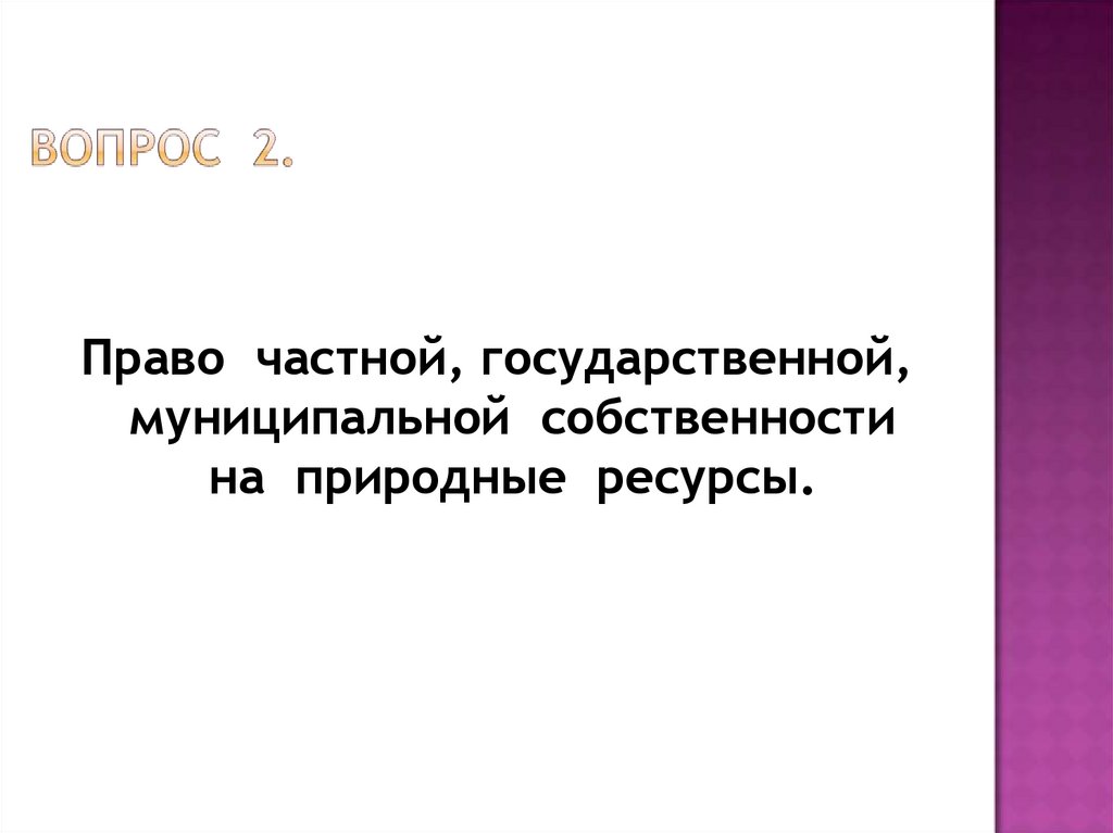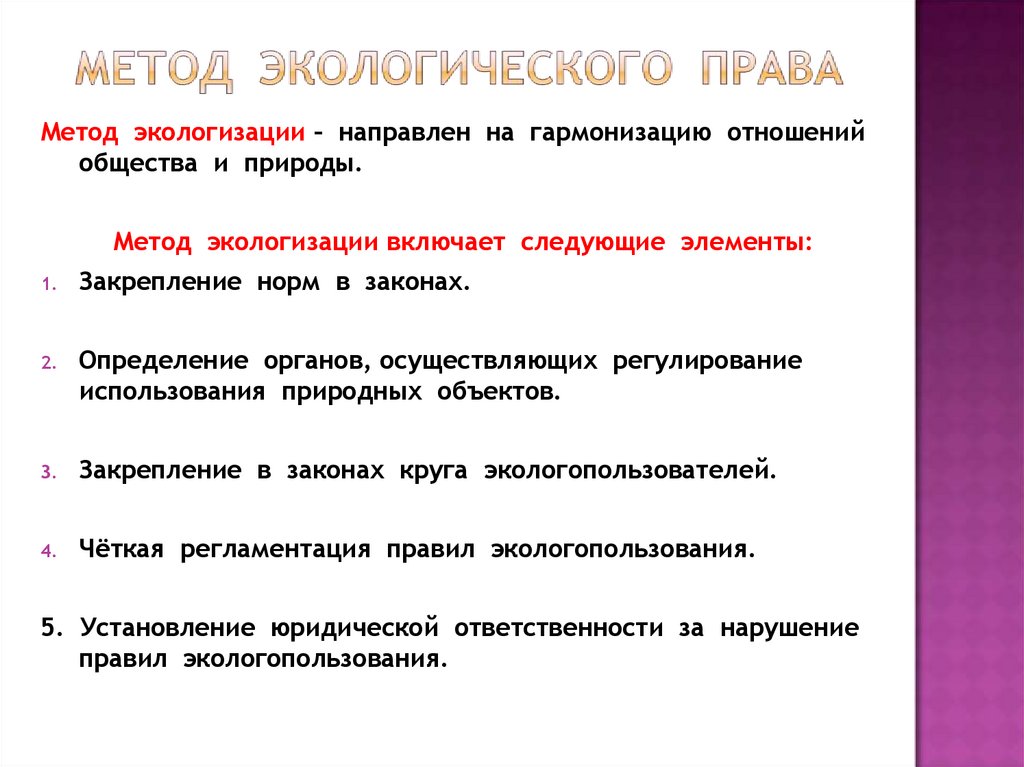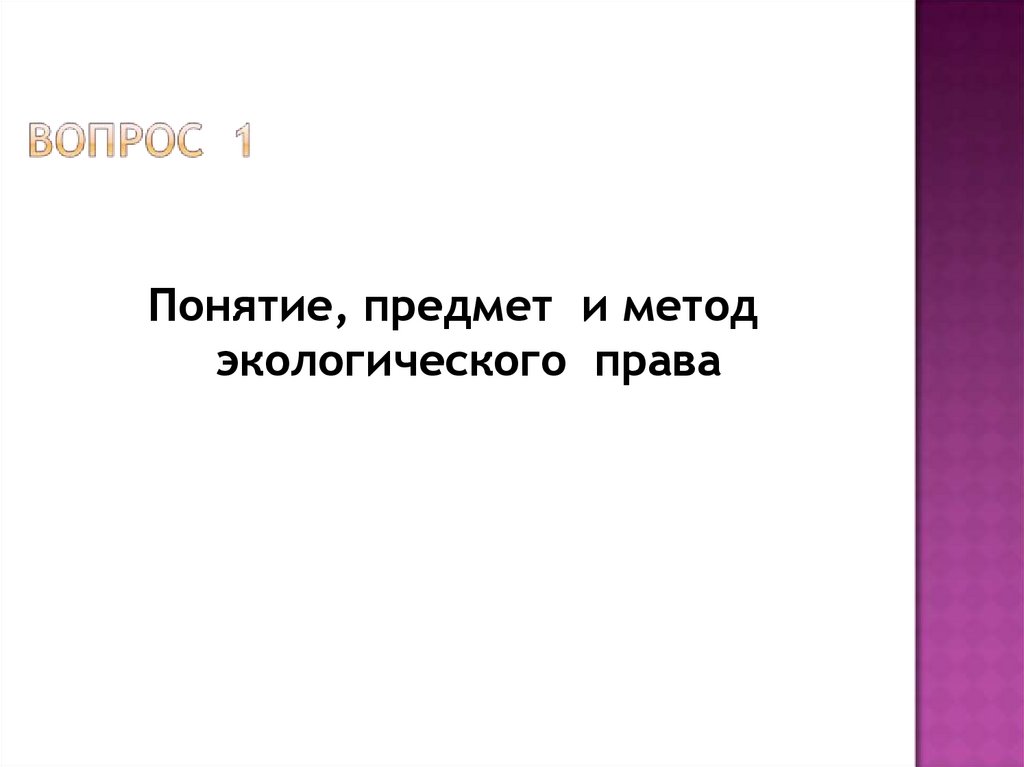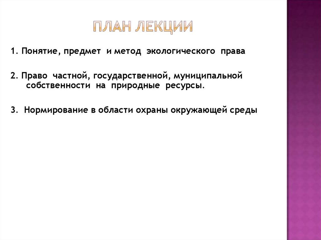 1. Понятие, предмет и метод экологического права2. Право частной, государственной, муниципальной
