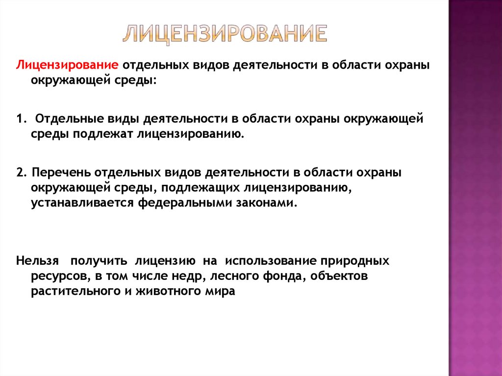 Лицензирование отдельных видов деятельности в области охраныокружающей среды: