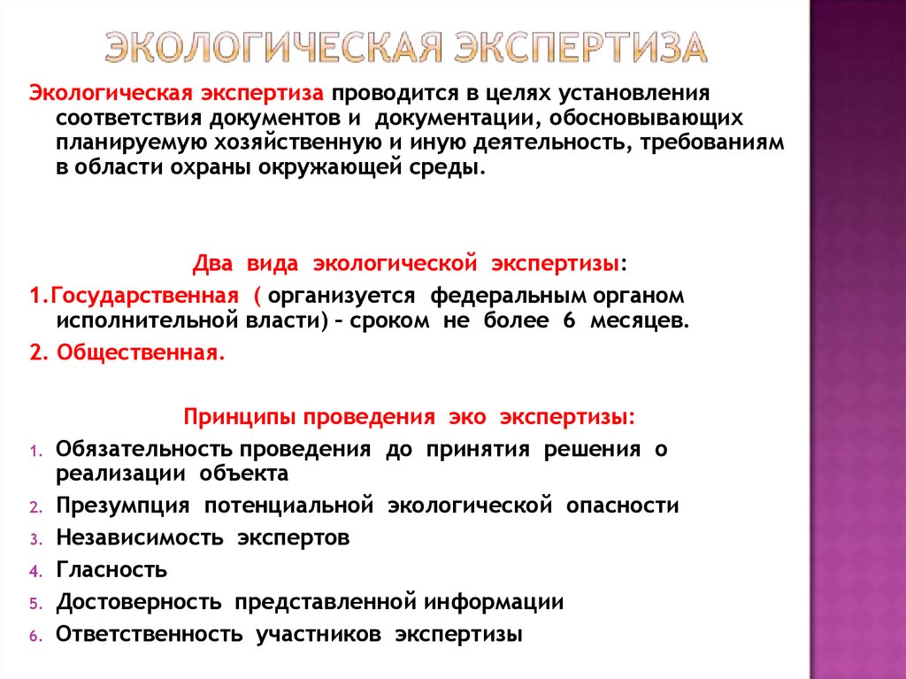 Экологическая экспертиза проводится в целях установлениясоответствия документов и документации, обосновывающих