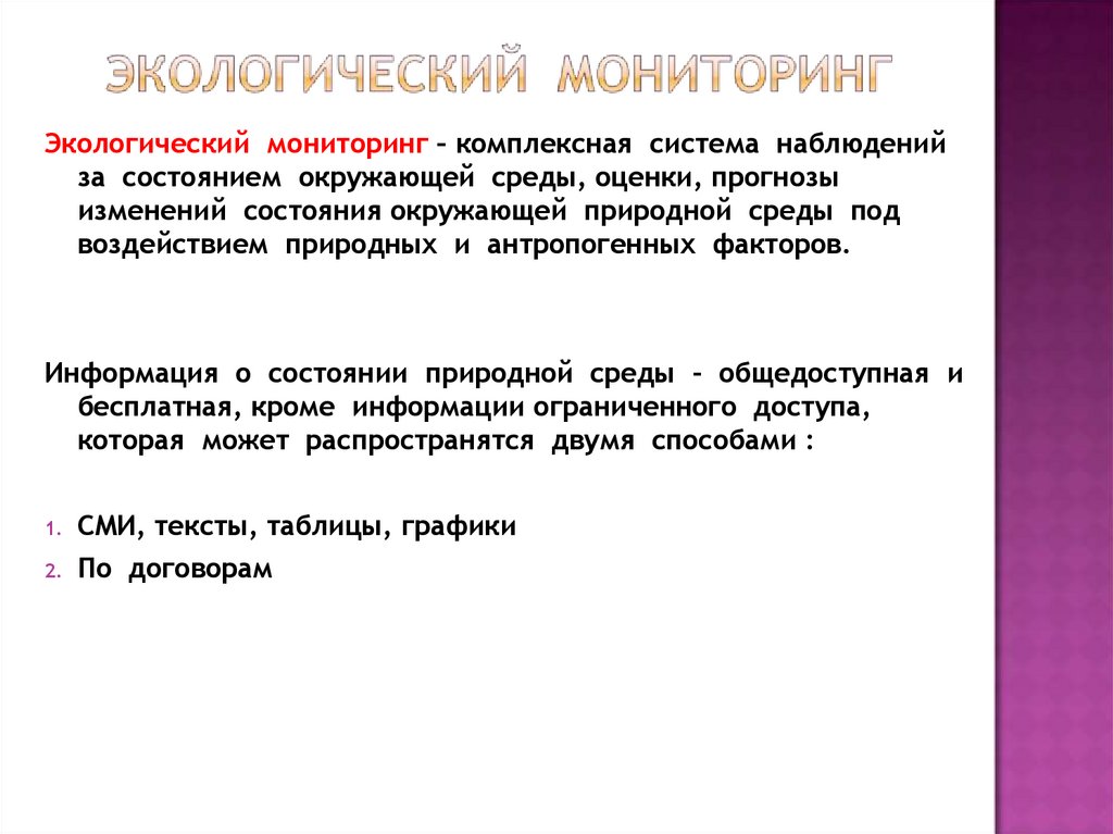 Экологический мониторинг – комплексная система наблюденийза состоянием окружающей среды, оценки, прогнозы